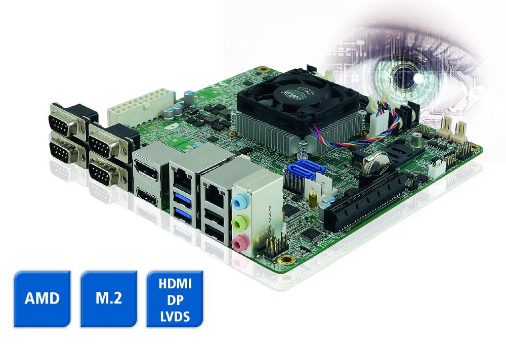 Drei unabhängige Displays werden über je eine HDMI- und DP-Schnittstelle und wahlweise über einen internen LVDS- oder eDP-Anschluss mit brillanter Bildqualität versorgt. Weitere Schnittstellen wie 4 x USB, 2 x Gigabit-LAN und 4 x COM sind herausgeführt und erleichtern die Integration des Boards in je-de Bildverarbeitungslösung.