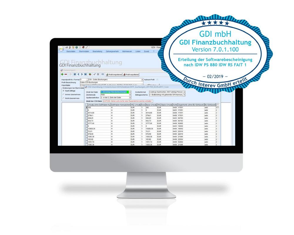 Die kaufmännischen Software-Produkte der Gesellschaft für Datentechnik und Informationssysteme mbH (GDI) durchlaufen dauerhaft und regelmäßig Kontroll-, Wartungs- und Verbesserungsprozesse. Die neueste Weiterentwicklung der GDI Finanzbuchhaltung erhielt zusätzlich noch einen offiziellen Ritterschlag.