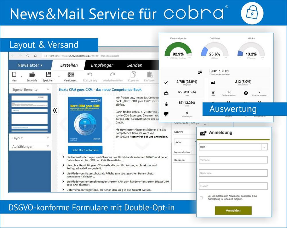 Die Voraussetzungen für den Erfolg moderner Online-Marketing-Kampagnen sind im Zeitablauf erheblich komplexer geworden. So ist beispielsweise Konformität mit der umfangreichen und europaweit geltenden Datenschutzgrundverordnung (DSGVO) seit deren Inkrafttreten in 2018 ein absolutes Muss. Entsprechend hat cobra sein Mailing-Tool News & Mail Service um neue Features erweitert.