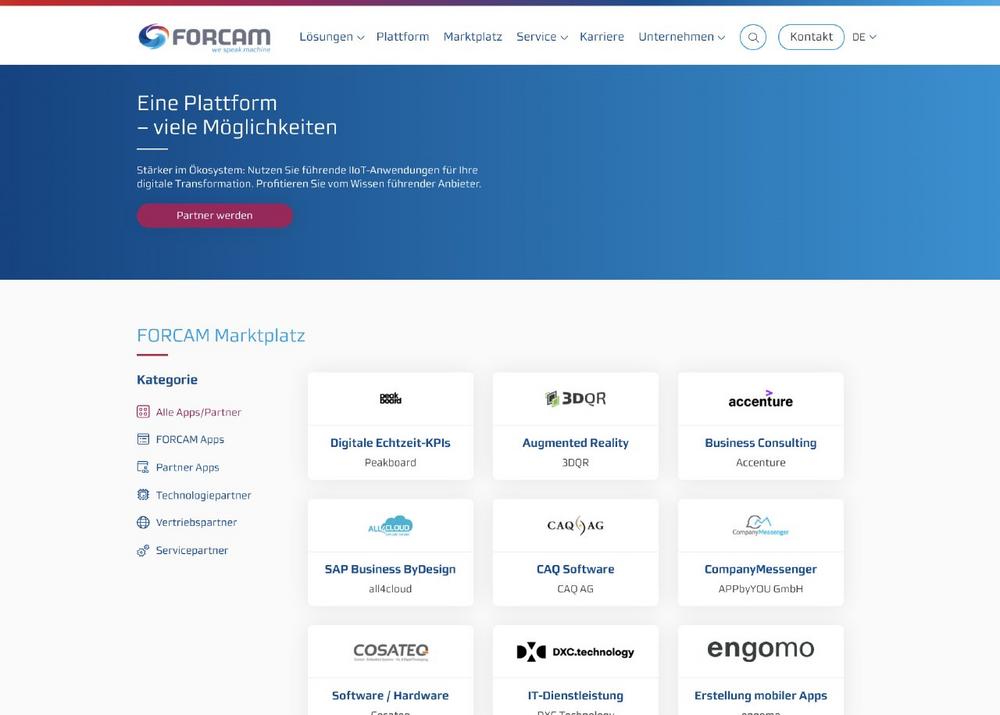 Mit dem neuen Marktplatz hat FORCAM auch eine neue Unternehmens-Website gestartet. Das Online-Angebot des Unternehmens bietet in ganz neuem optischen Gewand noch mehr Nutzwert rund um die Themen digitale Transformation, Shopfloor Management und Plattform Technologie für die Industrie.