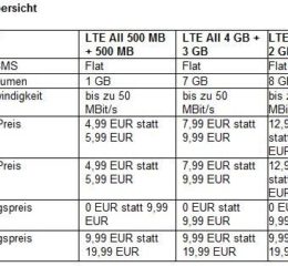 Die Mobilfunkmarke sim.de bietet für kurze Zeit eine neue Sonderaktion. Dabei erhält der Tarif LTE All 4 GB ein kostenfreies Datenvolumen von 3 GB hinzu. Der monatliche Preis für den Tarif mit 7 GB mobilem Internetvolumen beträgt 7,99 EUR. Ebenfalls […]