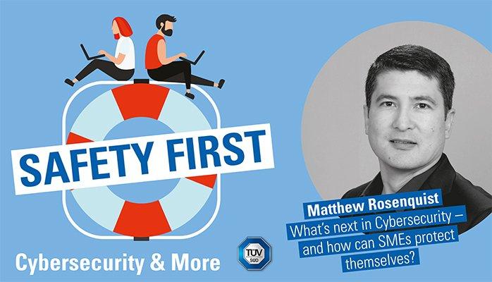 Im Podcast „Safety First“ von TÜV SÜD geht es um Cybersecurity, Datenschutz und mehr. Er erscheint zweimal im Monat mit einer neuen Folge. Ob als Privatmensch, im Job oder als selbständiger Unternehmer: Jeder, der die Chancen der Digitalisierung bestmöglich für sich nutzen möchte, sollte auch ihre Risiken kennen und mit ihnen umgehen können. Zu hören und zu abonnieren gibt es „Safety First“ auf vielen gängigen Podcast-Apps sowie hier: http://www.tuvsud.com/podcast.