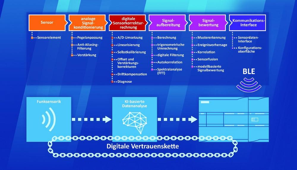 Der Smart-Factory-Sensorik-Baukasten von SSV ermöglicht einen Technologie-Upgrade für jede SPS: Bluetooth-Echtzeitdaten werden per Machine Learning analysiert und das Ergebnis an eine Steuerung geschickt.