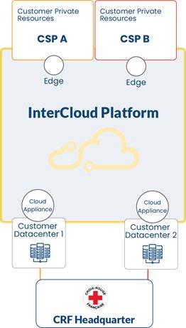 InterCloud stellte dem Roten Kreuz eine Infrastruktur und ein Automatisierungsportal zur Verfügung, die die Flexibilität und Reaktionsfähigkeit der IT-Teams verbessern. Die InterCloud-Plattform ermöglicht es, die beiden ausgewählten Cloud Service Provider (CSP) als sichere und transparente Erweiterungen der Campus-IT zu betrachten, die in das interne Informationssystem des Roten Kreuzes integriert sind.