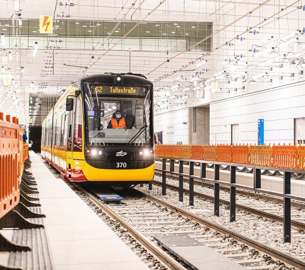 An der Tunneleinfahrt ändert sich das Betriebskonzept – denn statt auf Sicht wird hier nun nach Signal gefahren. Bislang zog dies für den Betreiber auch immer einen Wechsel des Betriebssteuerungssystems nach sich. Doch für die Verkehrsbetriebe Karlsruhe GmbH und die Albtal-Verkehrs-Gesellschaft mbH, die mit ihren Tram- und Stadtbahnen durch den Tunnel fahren, war es außerordentlich wichtig, dass sie auch im neu eröffneten Tunnel unter der Innenstadt alle nicht sicherheitsrelevanten Aspekte in ihrem bewährten Intermodal Transport Control System, MOBILE-ITCS von INIT, steuern können. Die benötigten Funktionen umschließen das Monitoring des Betriebsgeschehens und evtl. erforderliche dispositive Maßnahmen, die Sprach- und Datenkommunikation und nicht zuletzt die Fahrgastinformation – wofür in den letzten Jahren konsequent die Voraussetzungen geschaffen wurden.