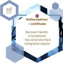 Cross-border employmentOnline seminar + certificate Topic: Business Traveller in Switzerland – Tax, social security & immigration aspects on September 14, 2022 from 09:00 a.m. – 12:00 p.m. Our international working environment often requires business travellers to regularly work in Switzerland or attend […]