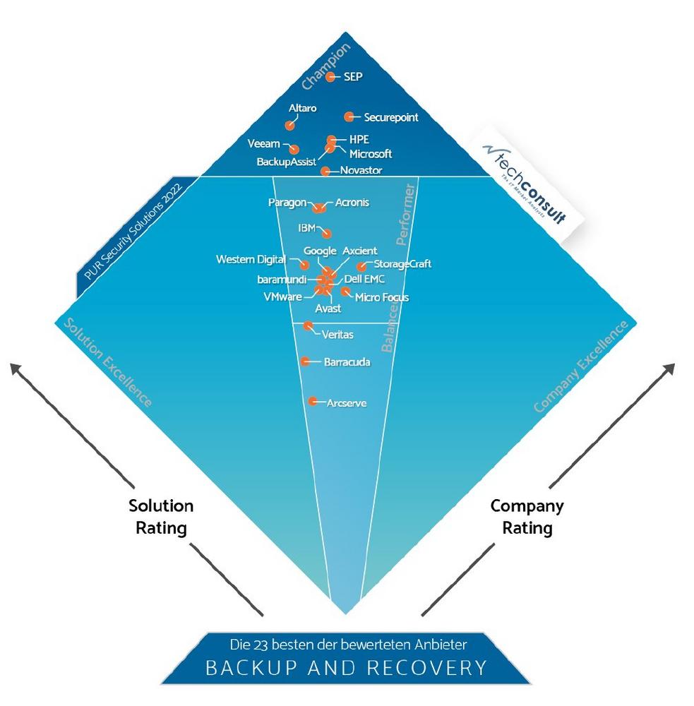 • SEP ist zum dritten Mal in Folge Champion beim Professional User Rating-Security Solutions (PUR-S) – Backup and Recovery 2022 von techconsult und Leader im Diamanten