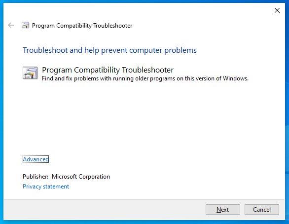 Wenn der bösartige ms-msdt:-Link aufgerufen wird, löst er einen MSDT-Befehl mit Befehlszeilenargumenten wie dem folgenden aus: msdt /id pcwdiagnostic …. Wenn es von Hand ausgeführt wird, ohne andere Parameter, lädt dieser Befehl automatisch MSDT und ruft die Programmkompatibilitäts-Fehlerbehebung auf, die harmlos aussieht.