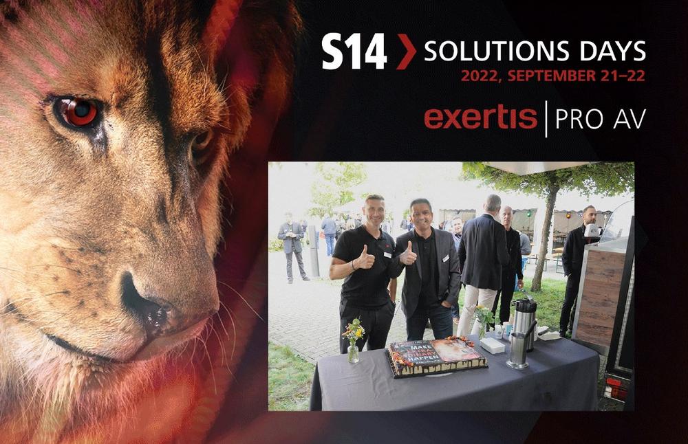 Bereits zum 14. Mal fanden die S14 Solutions Days bei Exertis Pro AV statt – der Branchentreff war auch dieses Jahr wieder ein voller Erfolg! Die erwartungsfrohen Gesichter der Besucher an der Registrierung wurden nicht enttäuscht: Auf dem S14 gab es viel zu entdecken und zu erleben. Mit zwei großen Messezelten scheuten Exertis Pro AV und die beteiligten Hersteller keine Mühen, um Besuchern ansprechend gestaltete Messestände mit spannendster Technik und Lösungen aus der Pro AV Branche zu präsentieren. Intensive Fachgespräche mit Exertis Pro AV Experten und Herstellervertretern sorgten bei familiärer Atmosphäre für individuelle Projektberatung, Entwicklungen und Lösungsansätze. Entsprechend konnten Integratoren, Techniker und Fachhändler neue Inspirationen und Eindrücke mitnehmen und auch die Hersteller zeigten sich wieder sehr angetan von der S14 Messe als Branchen-Plattform.