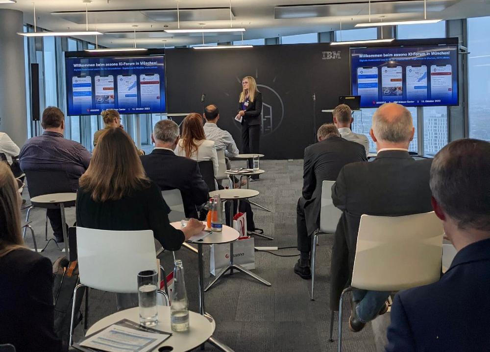 Neben weiteren Vorträgen von assono und IBM Experten wurde im Austausch mit dem Projektteam der IHK Akademie München und Oberbayern deren Chatbot "MiMo" vorgestellt. Alexandra Wankelmuth und Nadine Mohrberg berichteten im Interviewgespräch von der Umsetzung von MiMo, seinen Fähigkeiten und der Zusammenarbeit mit assono. Es folgten zahlreiche Fragen aus dem Publikum.