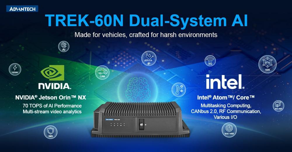 Um die wachsende Nachfrage nach Rechenleistung zu befriedigen, geht der TREK-60N mit seinem innovativen Dual-System-Design noch einen Schritt weiter. Diese fortschrittliche Computing-Plattform ist mit zwei eingebetteten Verarbeitungssystemen ausgestattet, die sich für Edge-KI-Anwendungen eignen. Angetrieben von einem leistungsstarken Intel® Core™/Atom™ E3940-Prozessor, bietet TREK-60N stabile Hochleistungs-Computing-Fähigkeiten, ideal für Multitasking. Zusätzlich ist der NVIDIA® Jetson Orin™ NX als KI-Beschleuniger integriert, der beeindruckende 70 TOPS an Rechenleistung bietet. Dies ermöglicht Multi-Stream-KI-Computing in Echtzeit und erleichtert die gleichzeitige Ausführung mehrerer Anwendungen.