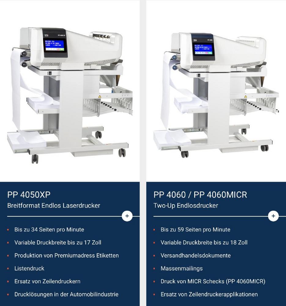 Spezielle Features, wie z. B. gerader Papierweg, mehrere Papierzuführungen, integrierter Schneider oder Papierbreiten bis 18’’ (2 x A4 im PP 4060) qualifizieren Drucker von PSi Laser für den Einsatz in den unterschiedlichsten Anwendungen und Branchen.