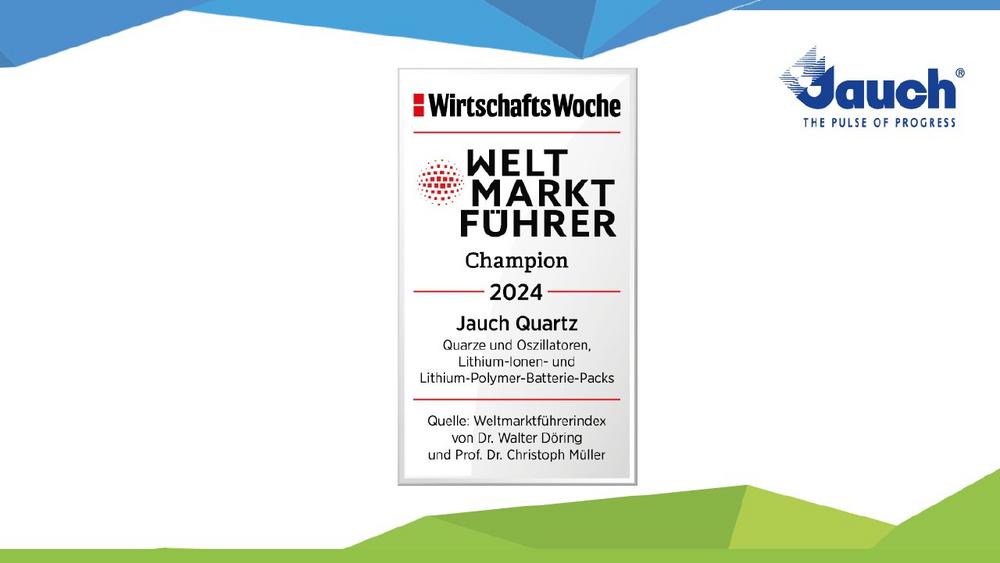Die Jauch Quartz GmbH ist Spezialist für frequenzgebende Bauteile und Batterietechnologie. Das Produktportfolio des 1954 gegründeten Familienunternehmens umfasst hochpräzise Quarze und Oszillatoren. Darüber hinaus hat sich der Mittelständler als zuverlässiger Distributions- und Entwicklungspartner für Batterielösungen einen Namen gemacht. Das Unternehmen fokussiert sich insbesondere auf Lithium-Batterien.