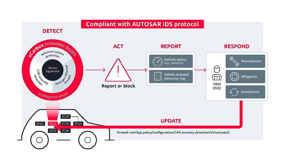 Mithilfe moderner softwaredefinierter Fahrzeuge bietet die Automobilindustrie ein sichereres, vernetztes und autonomes Fahrerlebnis. Mit Millionen von Code-Zeilen und verschiedenen Konnektivitäts-Schnittstellen ist ein SDV jedoch einer größeren Anzahl von Cyberrisiken ausgesetzt. Ein IDPS hilft Fahrzeugherstellern, die Anforderungen der UN R155 Norm für Cybersicherheit und Cybersicherheits-Managementsysteme zu erfüllen, indem es verdächtige Aktivitäten in elektronischen Steuergeräten (electronic control units, ECUs) erkennt und überwacht. Es bietet außerdem Echtzeitschutz, sobald ein Cyberangriff erkannt wird und fungiert als Sensor und Datenaggregator für die Kommunikation mit dem Vehicle Security Operations Center (VSOC) zur weiteren Datenforensik und erweiterten Analyse von Cyberbedrohungen.