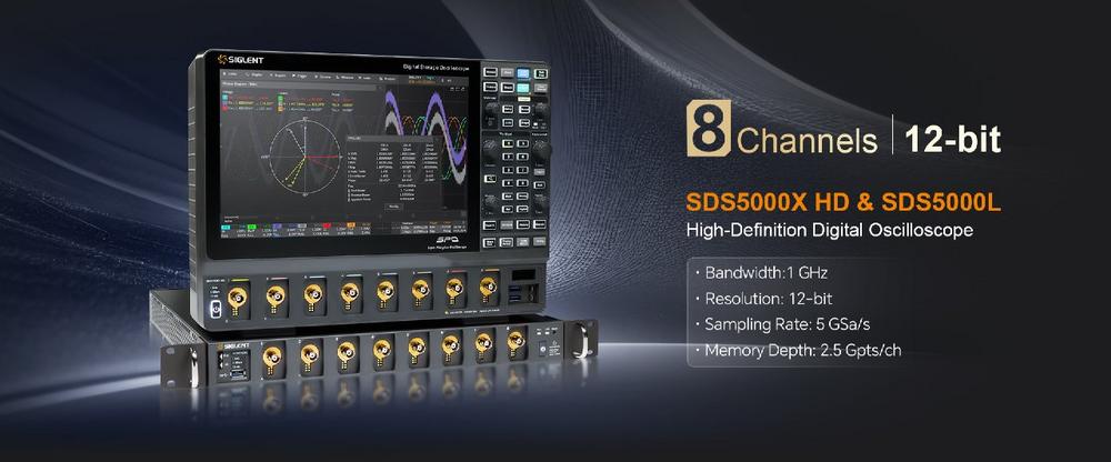 Siglent stellt mit den Serien SDS5000X HD und SDS5000L die neuesten Mitglieder seines leistungsstarken Oszilloskop Portfolios vor. Diese neuen Oszilloskope mit bis zu 8 Kanälen und einer Bandbreite von bis zu 1 GHz markieren einen wichtigen Meilenstein in SIGLENTs Produkt-Strategie. Dank hoher Abtastraten und dem standardmäßig tiefen Speicher bieten die Geräte detailgenaue Einblicke in komplexe Signalverläufe. In Kombination mit umfassenden Analyse-Tools sind die SDS5000X HD und SDS5000L darauf ausgelegt, den steigenden Anforderungen moderner Leistungselektronik, Embedded-Systemen und automatisierter Testanwendungen gerecht zu werden.