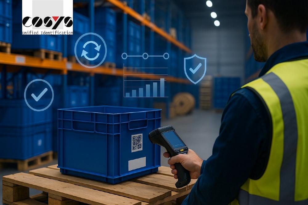 Jeder Behälter erhält eine eindeutige ID (Barcode, QR). COSYS führt dazu einen digitalen Zwilling mit Stammdaten (Typ, Material, Eigentümer, Einsatzbereich) und Lebenszyklus-Historie (Wareneingang, Umläufe, Reinigung, Reparatur, Aussonderung). So entsteht die Basis für belastbare Nachweise.