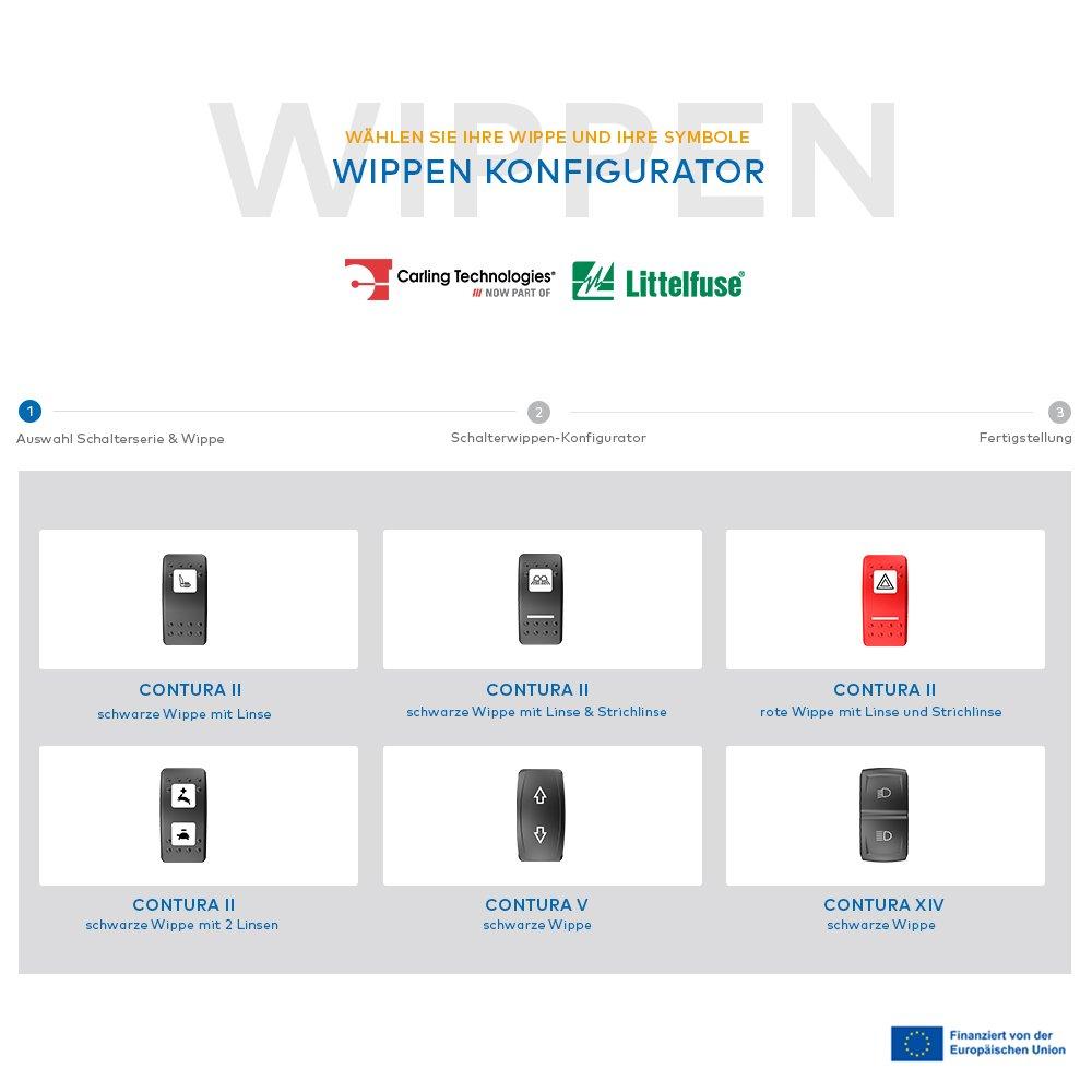 Die miunske GmbH stellt Fahrzeugherstellern mit dem neuen browserbasierten Wippenkonfigurator ein Tool zur Verfügung, das den Gestaltungs- und Beschaffungsprozess für Schalterwippen deutlich vereinfacht. Fahrzeughersteller und Ausstatter können damit Carling-Schalterwippen individuell konfigurieren, mit Symbolen oder Icons aus einer umfangreichen Datenbank versehen und direkt online visualisieren.