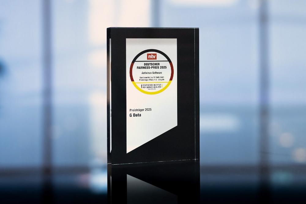 Die G DATA CyberDefense AG ist mit dem Deutschen Fairness-Preis 2025 ausgezeichnet worden. In der Kategorie Antivirus-Software ehrten das Deutsche Institut für Service-Qualität (DISQ) und der Nachrichtensender ntv das Bochumer IT-Sicherheitsunternehmen als eines der fairsten Unternehmen seiner Branche.G DATA hat mit seiner Security-Lösung „G DATA Internet Security“ den Deutschen Fairness Preis 2025 erhalten. In der Kategorie Antivirus-Software überzeugte der Cyber-Defense-Dienstleister durch besonders hohe Verbraucherzufriedenheit, die eine verlässliche und vertrauenswürdige Kundenkommunikation betont. In der großen Verbraucherbefragung des Deutschen Instituts für Service-Qualität (DISQ) und dem Nachrichtensender ntv wurden rund 66.600 Kundinnen und Kunden befragt. Bewertet wurden die Unternehmen in den Bereichen Preis-Leistungs-Verhältnis, Zuverlässigkeit, Transparenz und Weiterempfehlung. Die feierliche Preisverleihung fand Ende Oktober 2025 in der Berliner Bertelsmann-Repräsentanz statt.