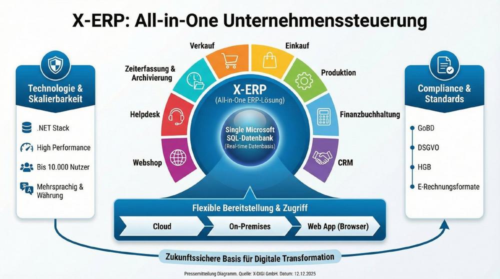Mit dieser All-in-One-Lösung bietet X-ERP Unternehmen eine zukunftssichere Software-Basis zur digitalen Transformation – ganz ohne Insellösungen oder komplexe Integrationsprojekte.