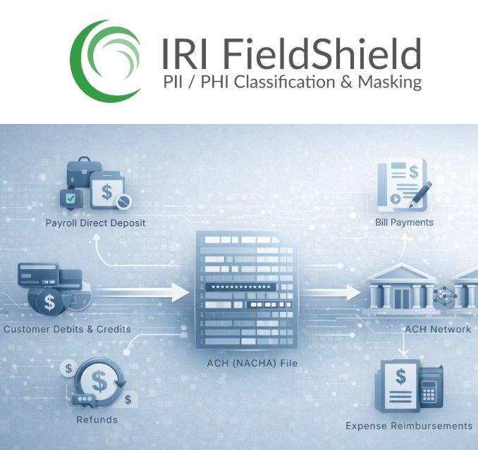 Mit IRI FieldShield lassen sich ACH- (NACHA-)Dateien gezielt und datenschutzkonform schützen. Das Tool ermöglicht die strukturierte Maskierung sensibler Felder wie Kontonummern, Namen oder Identifikatoren, ohne dabei das feste Dateiformat oder die referenzielle Integrität zu verletzen. Unterstützt werden unterschiedliche Schutzfunktionen wie Maskierung, Pseudonymisierung, Verschlüsselung, Tokenisierung und Redigierung, die regelbasiert und selektiv auf einzelne Datenelemente angewendet werden können. Dadurch bleiben ACH-Dateien technisch valide und weiterhin für Test-, Analyse- oder Weiterverarbeitungszwecke nutzbar. Ein technischer Artikel mit Beispielen ist hier zu finden.